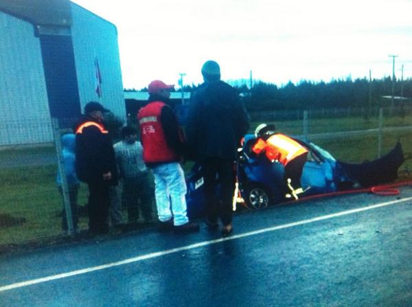 En la emergencia se vieron involucrados cuatro vehículos; según información de Bomberos  de Río Bueno el hecho se habría producido cuando el conductor de un automóvil Chevrolet Spark azul perdió el control y colisionó frontalmente con una camioneta marca Hyundai en la que viajaban 3 personas de las cuales dos quedaron atrapadas en el panel frontal de la máquina siendo rescatadas por personal de Bomberos de Río Bueno.