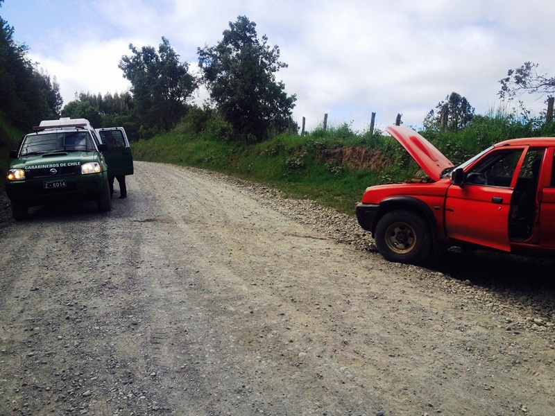Una camioneta marca Mitsubishi, placa patente ZH 88-06 chocó esta mañana a aproximadamente 2 kilómetros del cruce San Miguel, en el camino hacia Mashue, comuna de La Unión.