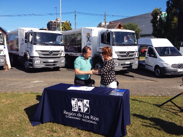 La tarde del miércoles 3 de diciembre en la ciudad de Valdivia, la alcaldesa María Angélica Astudillo firmó junto al intendente Egon Montecinos el documento que sella la adquisición de dos camiones recolectores de residuos domiciliarios para la comuna de La Unión de marca Mercedes Benz, modelo Axor, año 2014 con una capacidad de 19 metros cúbicos.