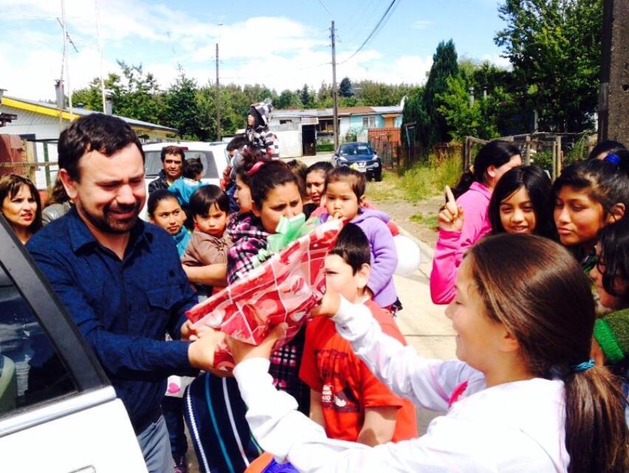 Por encargo del Viejito Pascuero: esposa de Intendente Montecinos y Gobernador Gallardo entregaron regalos a niños de población San Pedro en Río Bueno