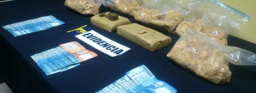 Lo incautado corresponde a 222,95 gramos de cocaína base, 101,46 gramos de clorhidrato de cocaína, 8,02 gramos de cannabis sativa, un teléfono celular y $80.000 pesos de dinero en efectivo, producto de la venta anterior de alucinógenos.