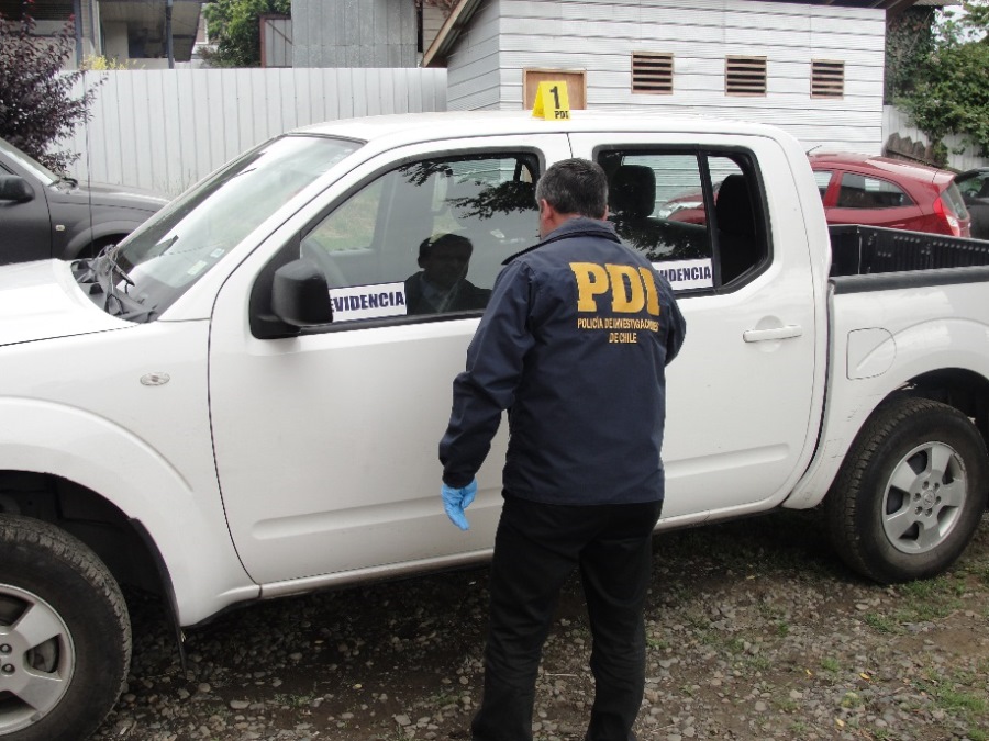 Detectives de la PDI de La Unión, en conocimiento del delito de robo con fuerza en lugar no habitado que afecto el servicentro COPEC, ubicado en la Ruta T-210, kilómetro 4, de esta Comuna, hecho ocurrido el día lunes 29 de diciembre del presente año, en horas de la madrugada, se abocaron a realizar las primeras diligencias tendientes al esclarecimiento del hecho, resultando de ellas la ubicación del vehículo utilizado en la comisión del delito oculto entre la vegetación de un predio del sector de San Javier, el cual presentaba evidencias de haber sido sustraído, como fractura de uno de sus vidrios y su chapa de contacto de encendido, además en su parte trasera inferior mantenía atado un cable entrelazado metálico, el cual se utilizó para atar y sacar la caja fuerte desde su base al exterior de la oficina de administración.