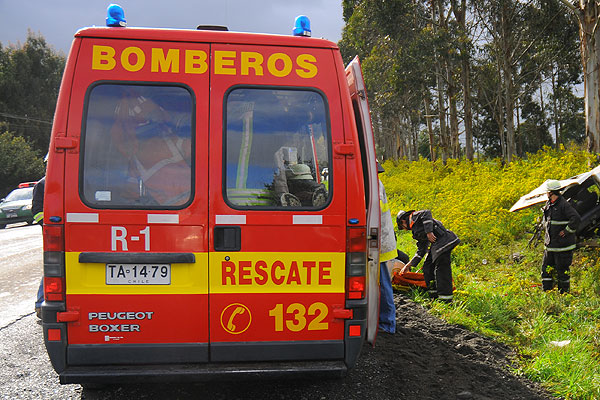 15:16 horas: Bomberos de Río Bueno se dirige hasta el sector Curaco, distante a unos 3 kilómetros de Río Bueno; donde pasadas las 15 horas un vehículo menor,volcó a un costado del camino dejando a sus tres ocupantes atrapados en su interior.