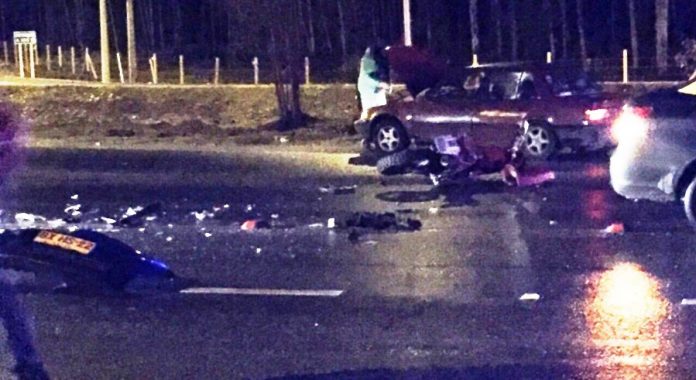 Pasadas las 21:15 horas se registró un grave accidente vehicular en las cercanías del cruce Los Tambores, comuna de La Unión que involucró a un taxi, placa patente BXHS 22, y a una motocicleta con dos ocupantes.