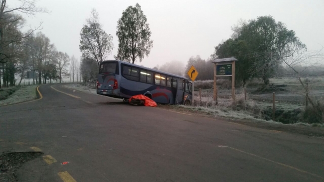 El lamentable accidente se registró alrededor de las 08:30 horas de ayer en el Cruce Mañirehue, Calafquen-Lican Ray, a 13 kilómetros de Panguipulli, cuando el conductor del bus de la empresa Carrasco, placa patente BY XS-41, perdió el control de la máquina producto de lo resbaladizo del pavimento, deslizándose hasta un desnivel a un costado de la ruta