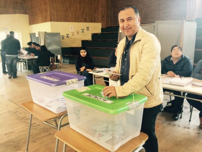 A eso de las 10:30 horas de este domingo, el intendente de la región de Los Ríos, Egon Montecinos, emitió su sufragio en la Escuela Río Bueno.