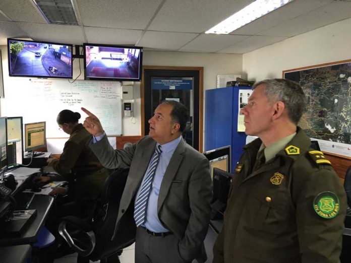 El intendente de Los Ríos, Egon Montecinos, junto al jefe de Zona de Carabineros, General Kurt Haarmann, monitorearon desde la central de cámaras de Carabineros la restauración del orden público luego de diversas situaciones, producidas en marco de movilizaciones que se registran durante esta jornada.