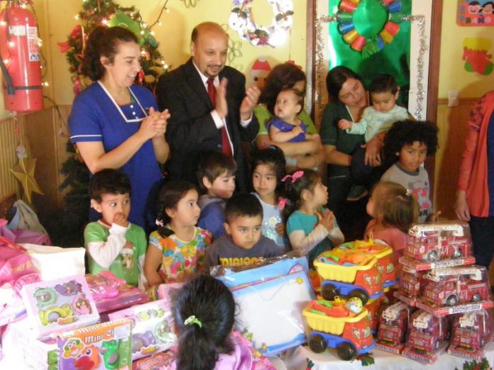 La mañana de este jueves, el alcalde Aldo Pinuer visitó dicho establecimiento educacional que cuenta con una matrícula de 72 párvulos desde los ocho meses de edad en adelante. Con mucha alegría los pequeños alumnos recibieron sus regalos en compañía de educadoras, padres y apoderados.
