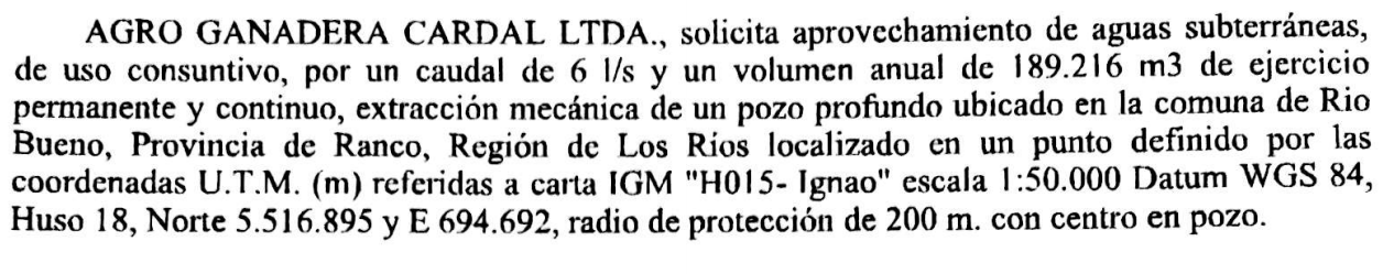 Inicio Avisos Legales Solicitud de Derecho de Aprovechamiento de Aguas Subterráneas: Agro Ganadera Cardal Ltda. Avisos Legales Solicitud de Derecho de Aprovechamiento de Aguas Subterráneas: Agro Ganadera Cardal Ltda. Por Equipo Prensa - 15 de diciembre de 2016 333 0 FacebookTwitterPinterestWhatsApp