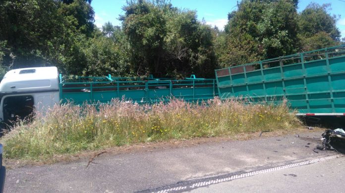 El conductor de un vehículo menor resultó fallecido tras protagonizar una violenta colisión con un camión cargado de animales, en la ruta que une las comunas de Paillaco y Valdivia.