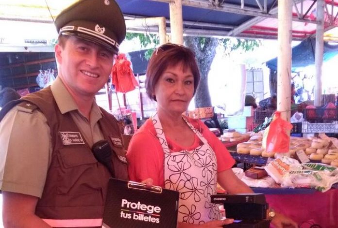La jornada de este viernes 30 de diciembre, justamente en una fecha de alta afluencia de público en supermercados, tiendas y locales comerciales establecidos, Carabineros de la Sección de Criminalística de Valdivia -específicamente del Laboratorio de Documentologia Forense- efectuaron una campaña de difusión en el sector fluvial de la ciudad, con la finalidad de dar a conocer algunas recomendaciones que permitan la detección de billetes falsos.