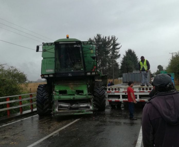 Los dos ocupantes de una máquina trilladora resultaron con lesiones de diversa consideración tras verse involucrados en un accidente de tránsito en el que además participaron dos camiones de alto tonelaje.
