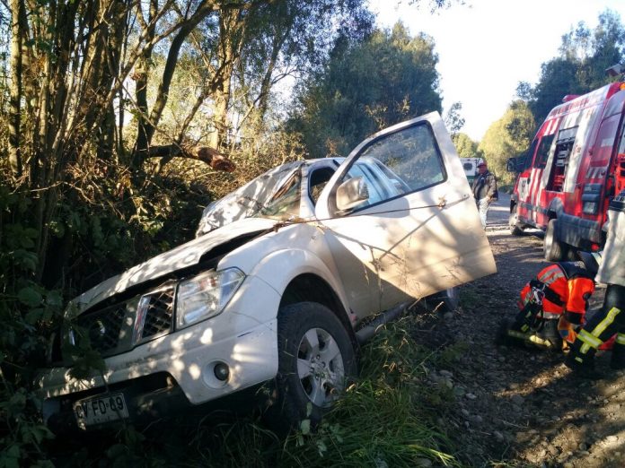 Tres personas resultaron lesionadas luego que una camioneta volcara en el sector rural de Cachillahue, comuna de Río Bueno.