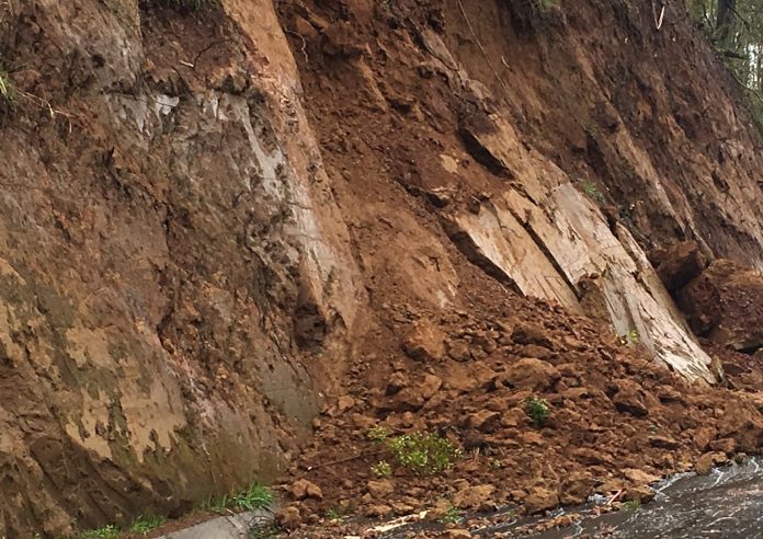 Alrededor de las 09:00 horas de este domingo, se registró el derrumbe de la ladera de un cerro en el sector de Pastal, comuna de Corral.