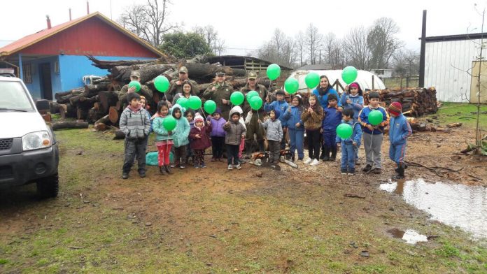 En una destacable acción, carabineros de la Patrulla de Acercamiento a Comunidades Indígenas de la Prefectura de Los Ríos, apoyaron a la Escuela Rural de El Naranjo en la comuna de Paillaco, en el corte y almacenamiento de leña.