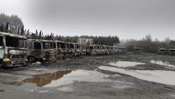 Según información entregada a este medio por fuentes policiales, tras las primeras pericias en el lugar del gigantesco incendio que consumió 29 camiones en la comuna de Mariquina se halló un panfleto en que la entidad denominada “Weichan Auka Mapu” se adjudicó el violento atentado.