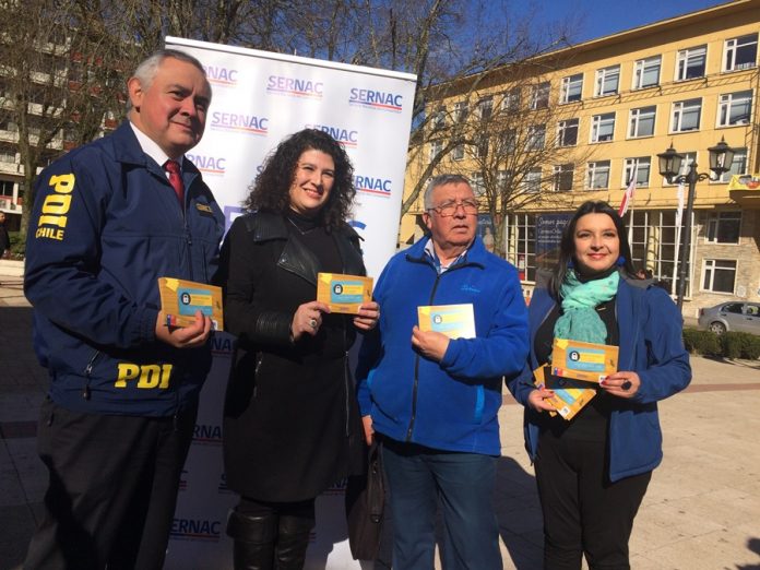 Durante una actividad realizada en la Plaza de la República en Valdivia, la Directora Regional del SERNAC, Lorena Bustamante; junto a la seremi de Economía, Ana María Bravo y al Subprefecto de la PDI, Andrés Torres, entregaron volantes a los transeúntes, donde se dan a conocer los derechos de los consumidores y las recomendaciones para un uso seguro de las tarjetas de crédito.