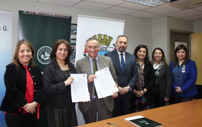 Firma de convenio permite articulación entre carrera de Liceo Camilo Henríquez, y carreras técnicas del área de educación de Santo Tomás.