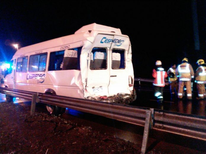 La tarde de este lunes, un camión marca Man, placa patente VG-9849, chocó por alcance a un furgón que se dirigía a Futrono con 20 pasajeros a bordo.