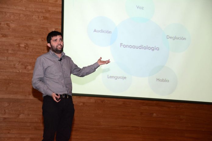 Rodrigo Tobar, docente de la U. de Chile y coordinador de la Unidad de Comunicación y Deglución en Adulto, fue el primer invitado en exponer, quien hizo la presentación: “Trastorno cognitivo comunicativo en el usuario adulto”.