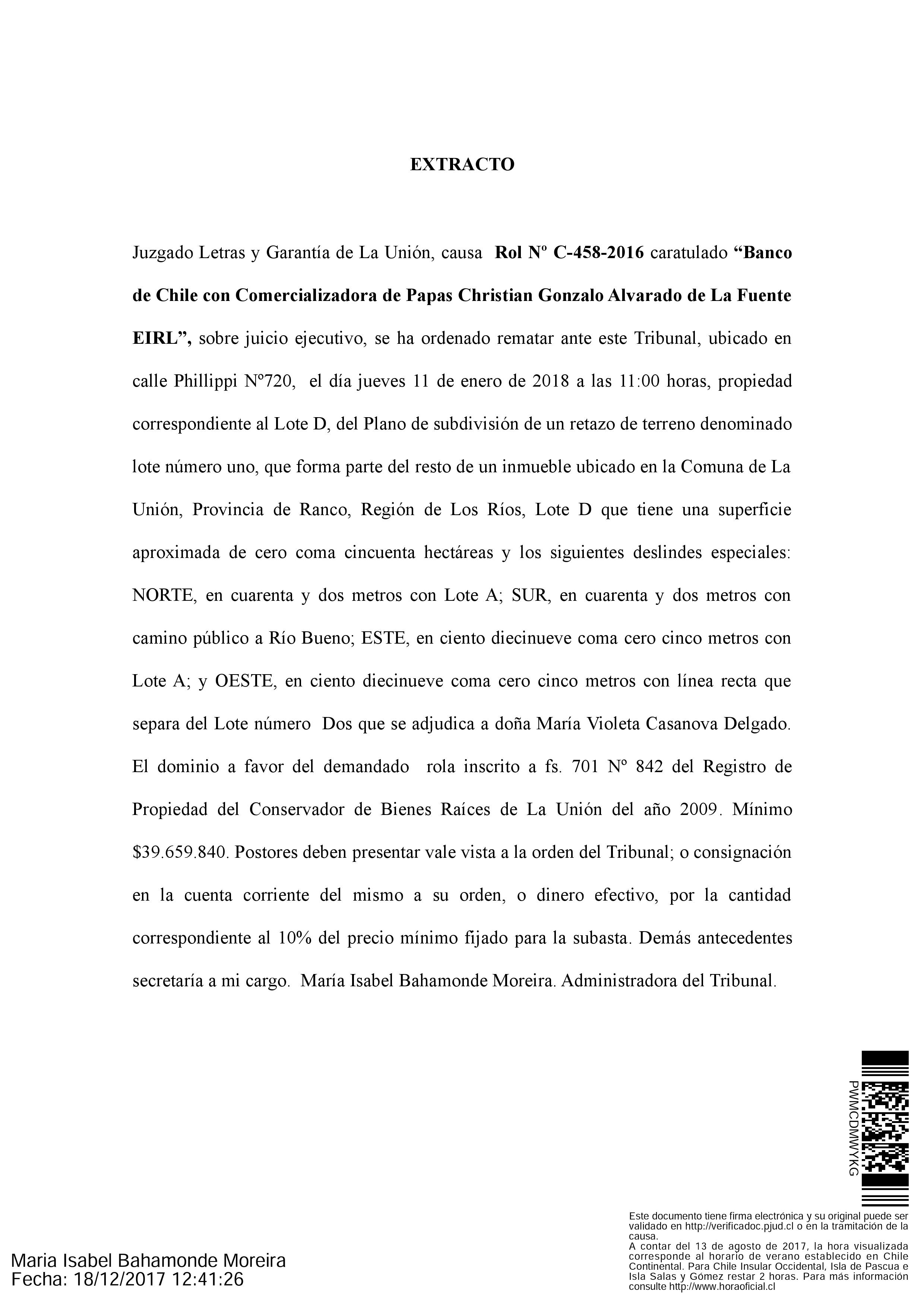 Inicio Avisos Legales Remate: Causa Rol C-458-2016, Juzgado de Letras, Garantía y Familia de La... Avisos Legales Remate: Causa Rol C-458-2016, Juzgado de Letras, Garantía y Familia de La Unión Por Equipo Prensa - 22 de diciembre de 2017 287 0 FacebookTwitterPinterestWhatsApp