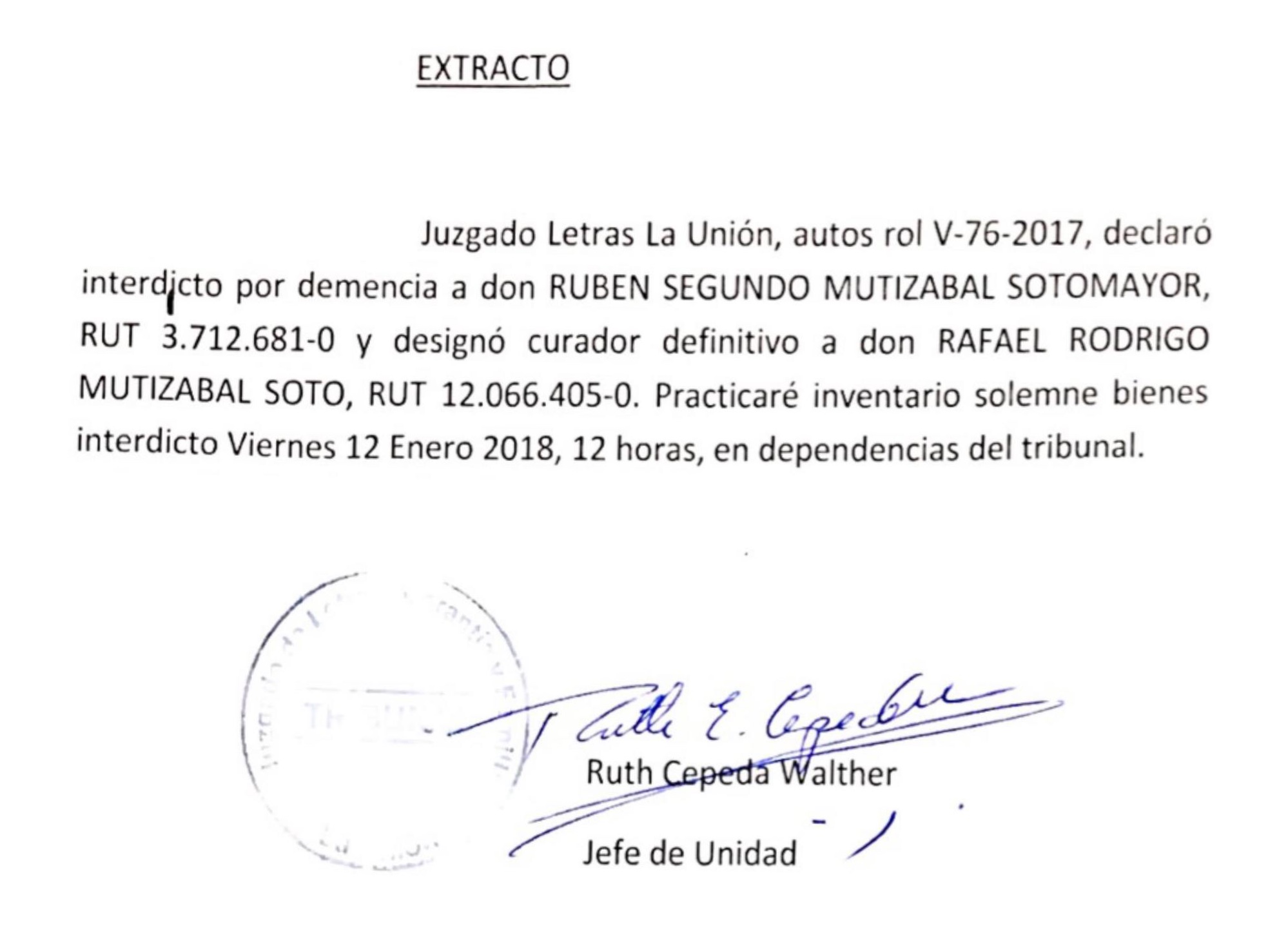 Inicio Avisos Legales Declaración de Interdicción: Rubén Segundo Mutizabal Sotomayor Avisos Legales Declaración de Interdicción: Rubén Segundo Mutizabal Sotomayor Por Equipo Prensa - 3 de enero de 2018 408 0 FacebookTwitterPinterestWhatsApp