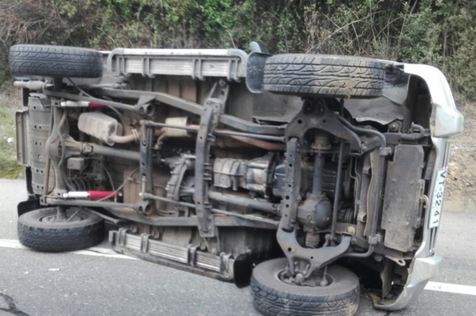 Al menos cinco vehículos han resultado con daños y dos de ellos volcados producto del derrame de aceite registrado durante esta jornada en la ruta 5 Sur a la altura del sector Lipingüe, comuna de Los Lagos.