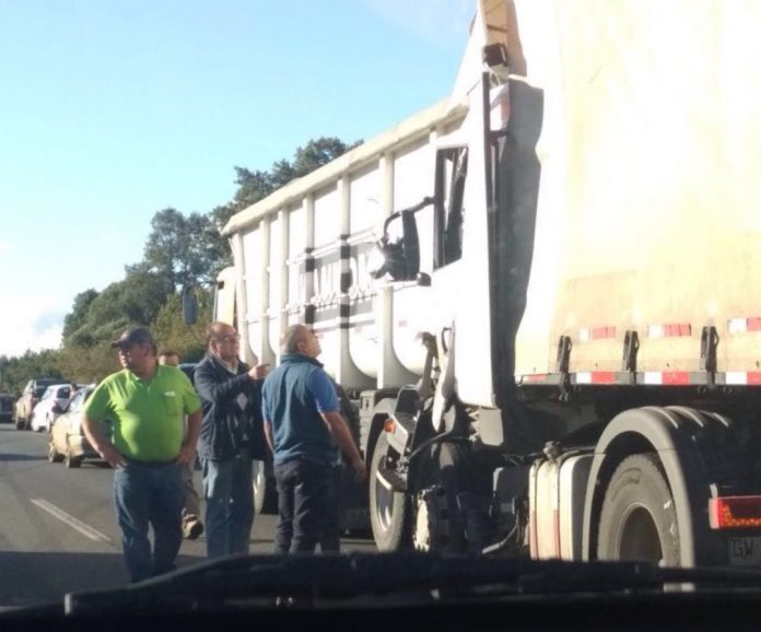 Dos camiones de alto tonelaje se vieron involucrados en accidente de tránsito por alcance en la ruta 5 Sur, a la altura del cruce Los Tambores.