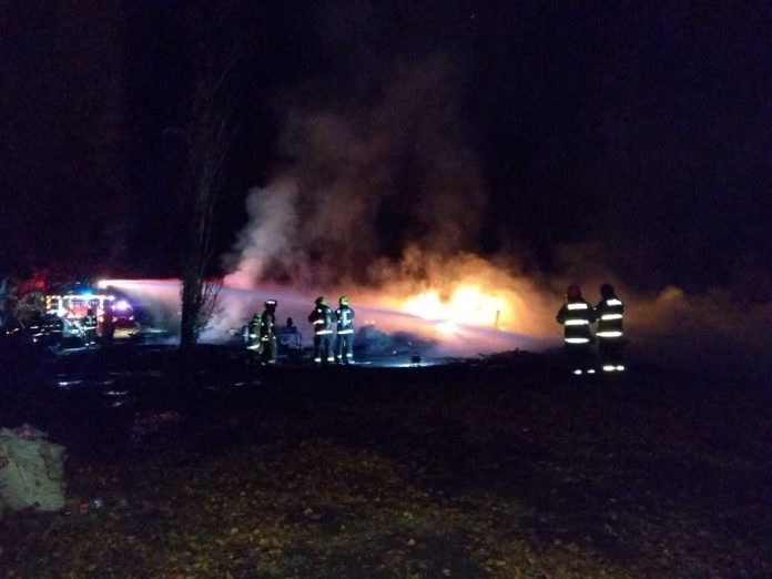 Un galpón que contenía maquinaria agrícola en desuso y materiales de construcción resultó completamente destruido la noche de este viernes producto de un voraz incendio que se inició por causas desconocidas alrededor de las 19:30 horas.
