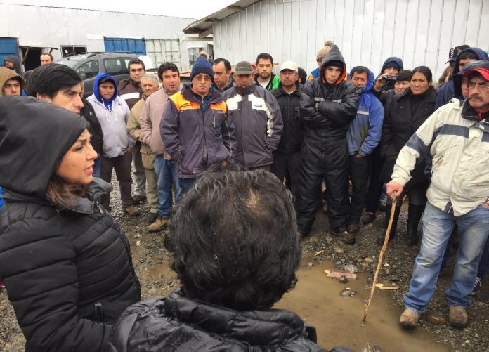 La alcaldesa Ramona Reyes junto al concejal José Aravena visitaron a los trabajadores esta mañana, tras lo cual solicitaron la presencia de autoridades regionales para informar a los afectados sobre los pasos a seguir.