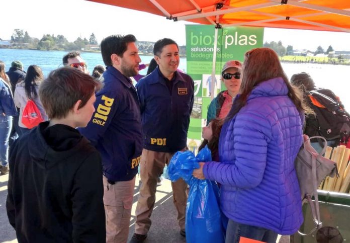 Detectives de la Brigada de Delitos contra el Medioambiente y Patrimonio Cultural Valdivia participaron -como voluntarios- en la Jornada de Recolección de Residuos y Basura en la Costanera de la capital regional.