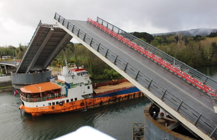 Con una optimización de los tiempos de operación, lo que permitió restablecer el tránsito vehicular a las 11 horas y no al mediodía como estaba inicialmente presupuestado, el sábado se ejecutó la segunda apertura programada del puente Cau Cau de Valdivia, luego de su puesta en uso provisorio el pasado 15 de agosto. En esta ocasión, la estructura alzó sus tableros para el paso de la embarcación Comau.