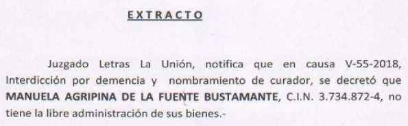 Inicio Avisos Legales Declaración de Interdicción: Manuela Agripina de la Fuente Bustamante Avisos Legales Declaración de Interdicción: Manuela Agripina de la Fuente Bustamante Por Equipo Prensa - 23 de octubre de 2018 283 0 FacebookTwitterPinterestWhatsApp