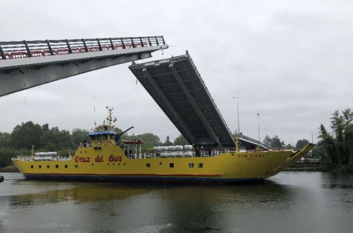 En esta ocasión fue el ferry Don Juan II, mismo que entró a los astilleros de Asenav hace dos semanas, el cual requirió la apertura de los tableros del viaducto basculante para su tránsito fluvial por el río Cau Cau.