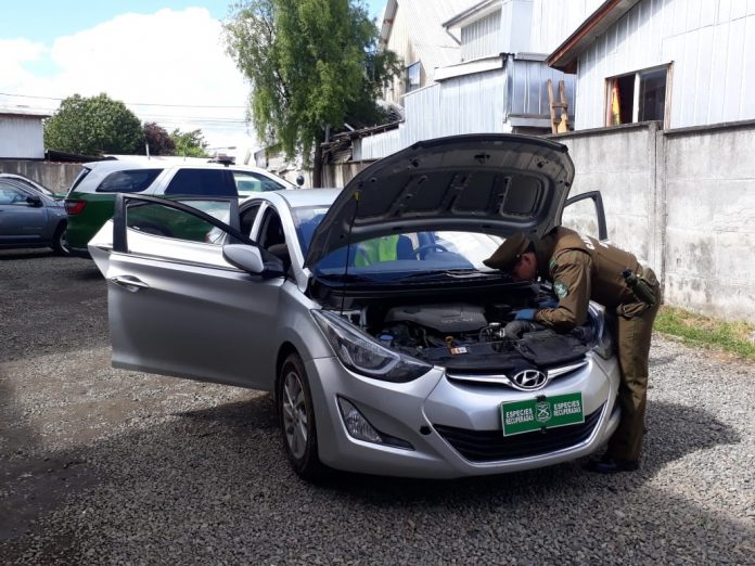 El automóvil, Hyundai Elantra, patente DWZH-40, mantenía encargo vigente por robo con intimidación en la ciudad de Santiago desde el 17 diciembre del año pasado, cuando fue sustraído de madrugada en la comuna de El Bosque.