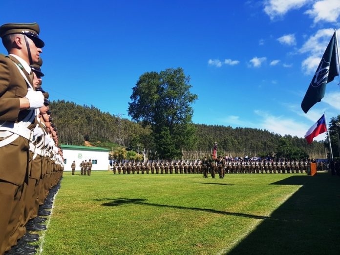 175 alumnos que a inicios de este año ingresaron a la Escuela de Formación de Carabineros en Valdivia, finalizaron su período de preparación policial realizando el tradicional juramento de servicio ante el Pabellón Patrio.