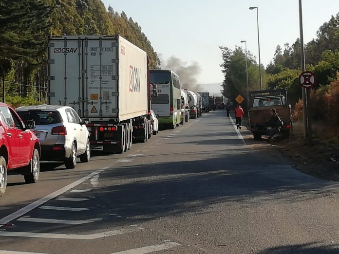 Una veintena de manifestantes relacionados al conflicto pesquero, bloquearon la ruta 5 Sur a la altura del sector Ciruelos, en la comuna de Mariquina.