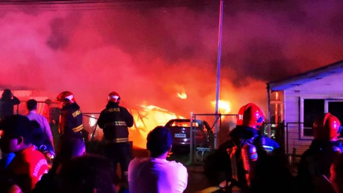 Una vivienda de material ligero de dos pisos y un automóvil quedaron completamente destruidos tras un incendio en el sector Beneficencia, en Valdivia.