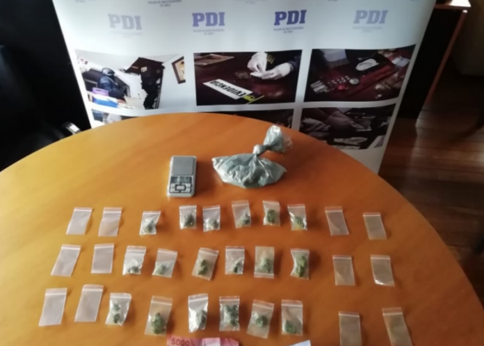 El detenido fue trasladado hasta el cuartel policial, donde se verificó que al interior de un bolso mantenía 42 gramos de cannabis sativa, dispuestos en 18 envoltorios de nylon herméticos, una balanza digital y ochenta mil pesos en dinero efectivo.