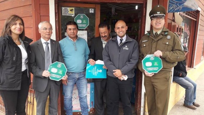 Actividad de lanzamiento fue encabezada por el gobernador de la provincia del Ranco, Alonso Perez de Arce y el coordinador regional de seguridad publica, Claudio Mansilla, quienes en compañía de representantes de la municipalidad de Río Bueno, comerciantes y Carabineros de Chile, dieron el vamos a la campaña “Comercio Conectado”.