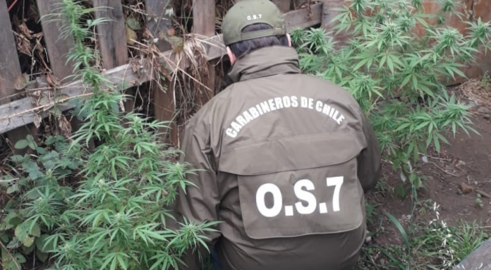Desde un inmueble de calle Mac Iver de Paillaco, carabineros del OS7 Valdivia incautaron tres plantas de marihuana de más de 2 metros de altura y un frasco con la misma sustancia elaborada y en proceso de secado.