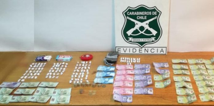 Carabineros confiscó una caja de paracetamol que contenía 32 envoltorios de pasta base (cocaína), una caja de Tapsin con 40 dosis de la misma sustancia, y un calcetín con otros 22 envoltorios de la misma droga.