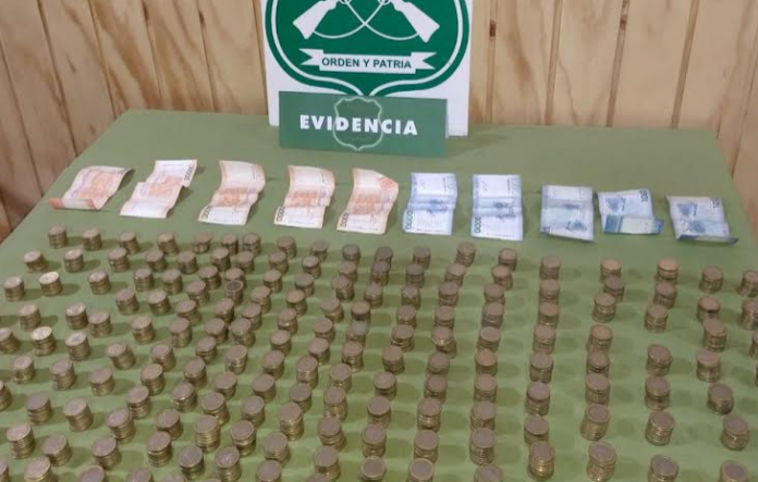 En poder de los imputados y al interior de dos bolsos, se encontró la totalidad del dinero sustraído, dividido en 615 mil pesos en monedas de 100, y 150 mil pesos en billetes.