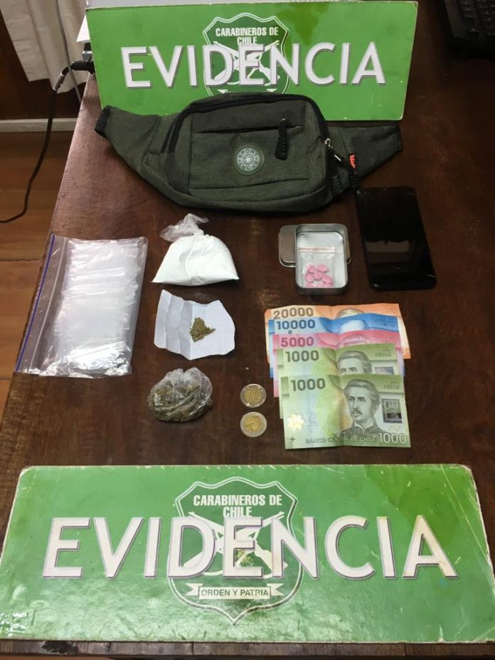 En el frontis del Liceo Alberto Blest Gana de Los Lagos, Carabineros de la Patrulla Motorizada de la Segunda Comisaría de esa comuna detuvieron a un individuo que fue sorprendido con distintos tipos de drogas.