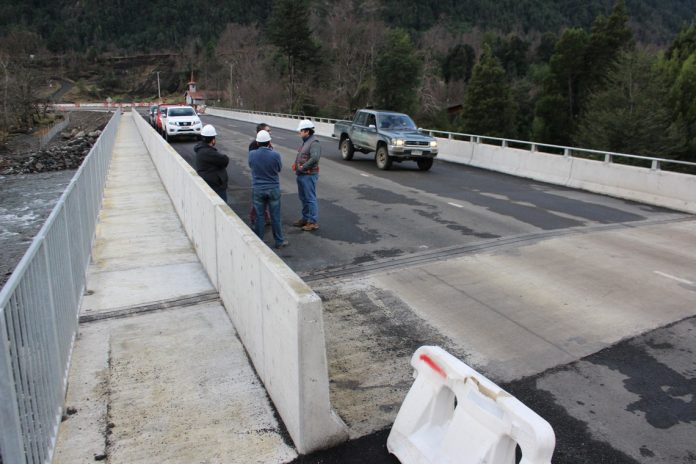 Así lo comprobaron en reciente visita inspectiva la seremi del MOP, Sandra Ili; el alcalde de Panguipulli, Rodrigo Valdivia y el concejal, Carlos Durán, quienes recorrieron los 15 kilómetros de la ruta verificando el avance actual de 54%; especialmente importante en la reciente habilitación para tránsito vehicular de los puentes Llancahue, Culán y número 2; a los que se suman los trabajos de terminación en los nuevos viaductos Añique 1 (de 35 metros de largo) y Añique 2 (con 30 metros de longitud).