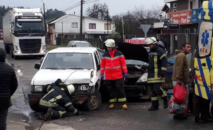 Una camioneta y un taxi colectivo colisionaron en la intersección de las calles Caupolicán y Manuel Ossa, en la comuna de La Unión.