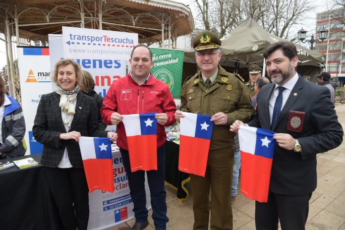 El martes en la Plaza de la República de Valdivia se lanzó la campaña “Un 18 Seguro”, actividad que fue liderada por el intendente César Asenjo, la seremi de Transportes y Telecomunicaciones, Marcela Villenas, la directora regional (s) del Senda, Cinthia Lara, y el general de Carabineros Iván Ketterer, y que engloba las diversas medidas de prevención de accidentes de tránsito y contingencia vial que se aplicarán en las próximas Fiestas Patrias en la región por los distintos servicios.
