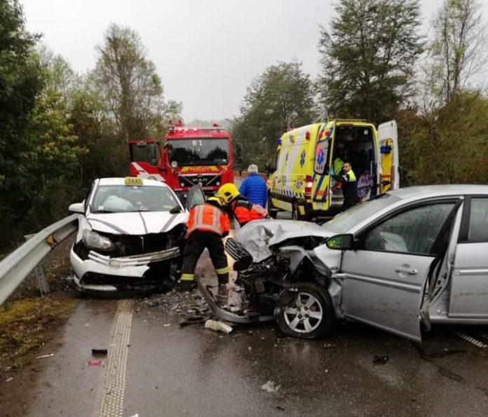 Durante el mediodía del miércoles, un automóvil particular y un taxi colisionaron frontalmente en el kilómetro 15 de la Ruta T-20, aproximadamente en el puente Lingue, en la ruta que une a Mariquina con Mehuín.