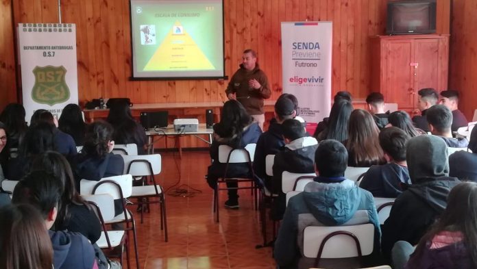 Hasta ahora, el personal de la Unidad Especializada en Drogas ha impartido charlas a estudiantes de 8º a 4º medio de los colegios Alonso de Ercilla, Príncipe de Asturias y Escuela España, manteniendo calendarizados para esta semana a planteles de Máfil, Mariquina y Los Lagos.