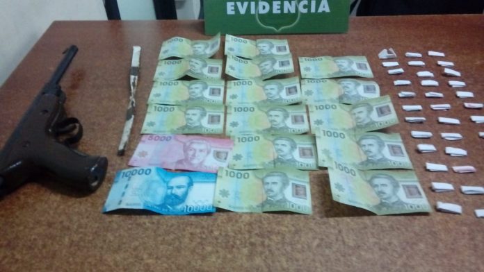 El hombre, identificado como S.A.O.P. (24), fue fiscalizado en la avenida Pedro Montt, lugar donde además de la droga se le encontró una pistola a postones de 32 mm, un fierro de 10 cm y $30 mil en dinero en efectivo, presumiblemente obtenido de la comercialización de la sustancia.
